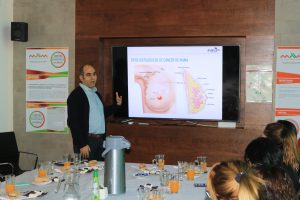 El doctor realizó una charla dirigida a todas las mujeres que trabajan en MPM. La charla tuvo como concepto central la detección temprana del cáncer de mama, y la prevención de este mismo.